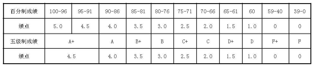 ③百分制成绩、五级制成绩与绩点间关系如下表所示: