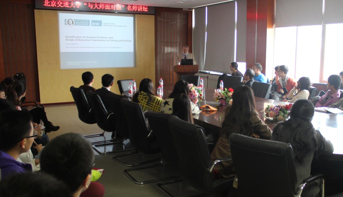 2014年10月6日~11日,欧洲运筹学联合会理事长Gerhard Wäscher教授、德国马格德堡大学经济管理系主任应邀到我院做学术报告并与我院师生进行学术交流访问。期间,Wäscher教授分别为我校教师和学生做了两场精彩的学术报告,并与我院教师进行了深入交流。